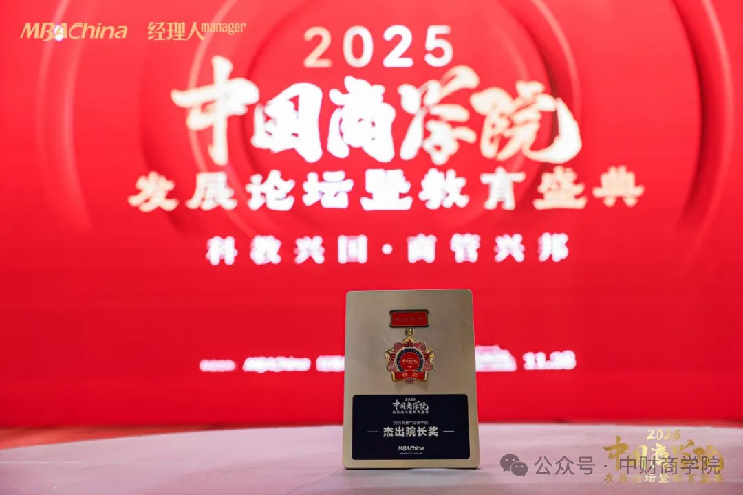 中央财经大学商学院院长兼MBA教育中心主任林嵩教授凭借在商学教育、学术研究、学院管理与社会服务等方面取得的卓越成就,荣获“2025年度中国商学院杰出院长奖”。