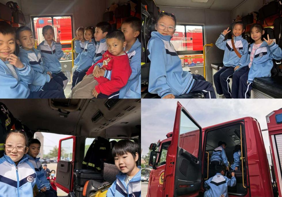 互动体验环节,同学们化身“小小消防员”,轮流登上消防车、触摸装备,在消防员的讲解下了解不同消防车装备在不同场景之中的用途,沉浸式感受消防救援,直观了解消防的专业与责任。